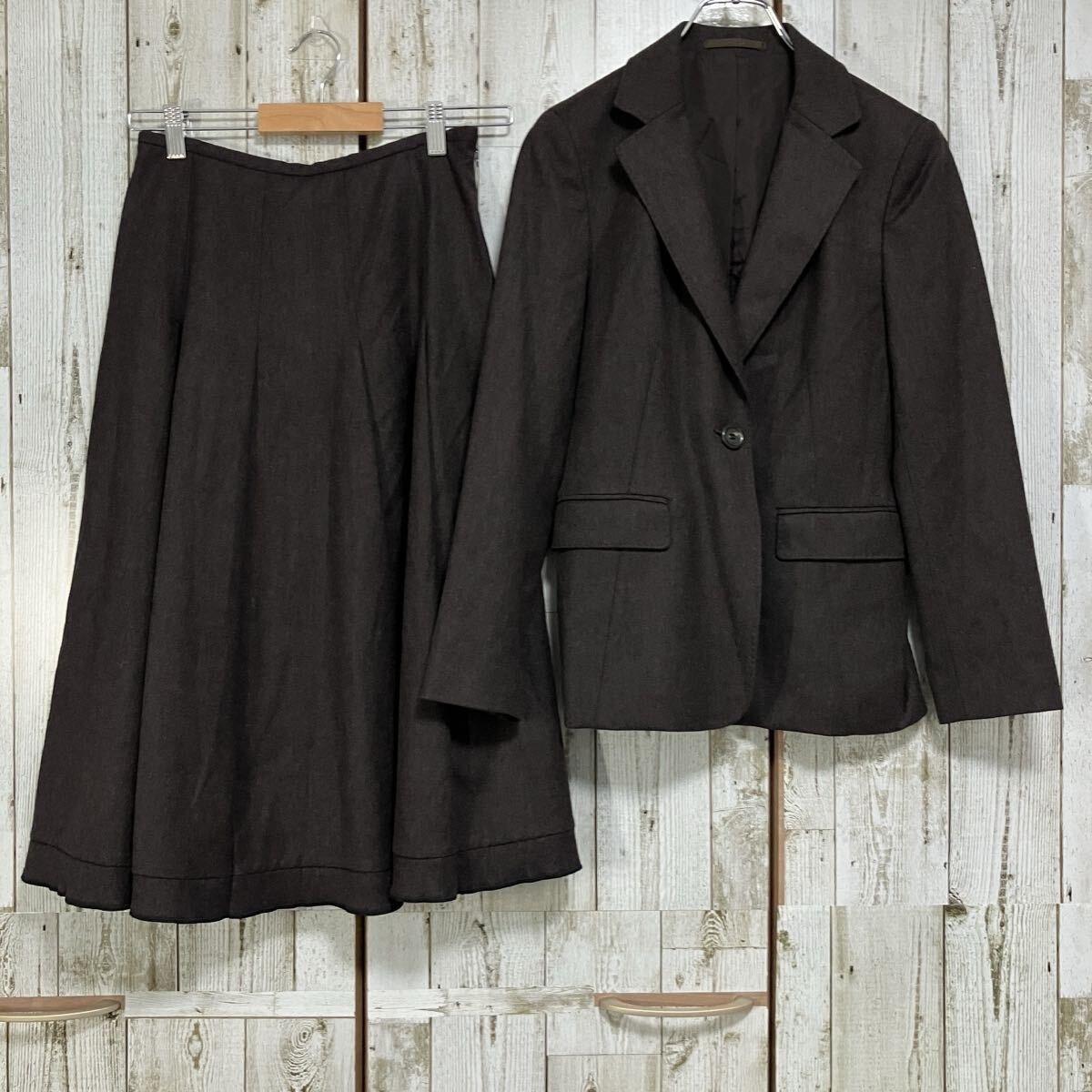 > ☆K.T KIYOKO TAKASE キヨコタカセ☆日本製☆セットアップ ジャケット スカート M 起毛 ダークブラウン レディース ウール [送料無料]n6294