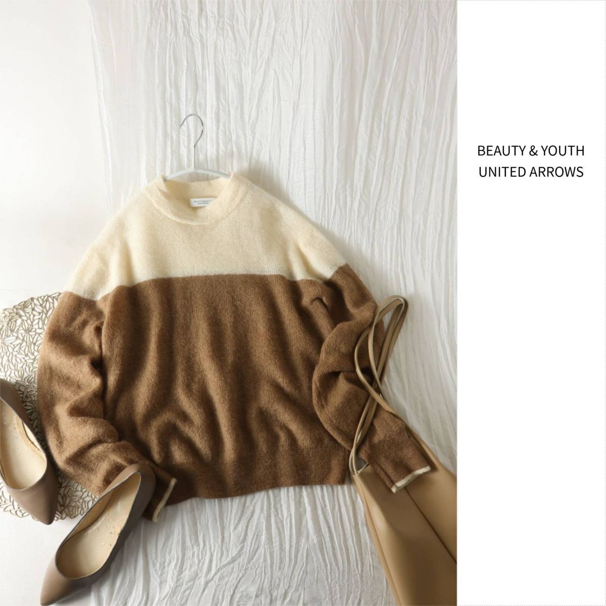 - 1.3万☆ユナイテッドアローズ/BEAUTY & YOUTH☆モヘヤミックスパネルニットプルオーバー☆M-B 6183