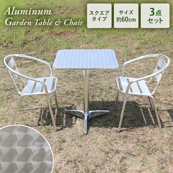 - 送料無料 アルミガーデンテーブルセット 3点セット UVカット 天板サイズ約60cm スクエアテーブル ガーデンテーブル&チェアー 1脚