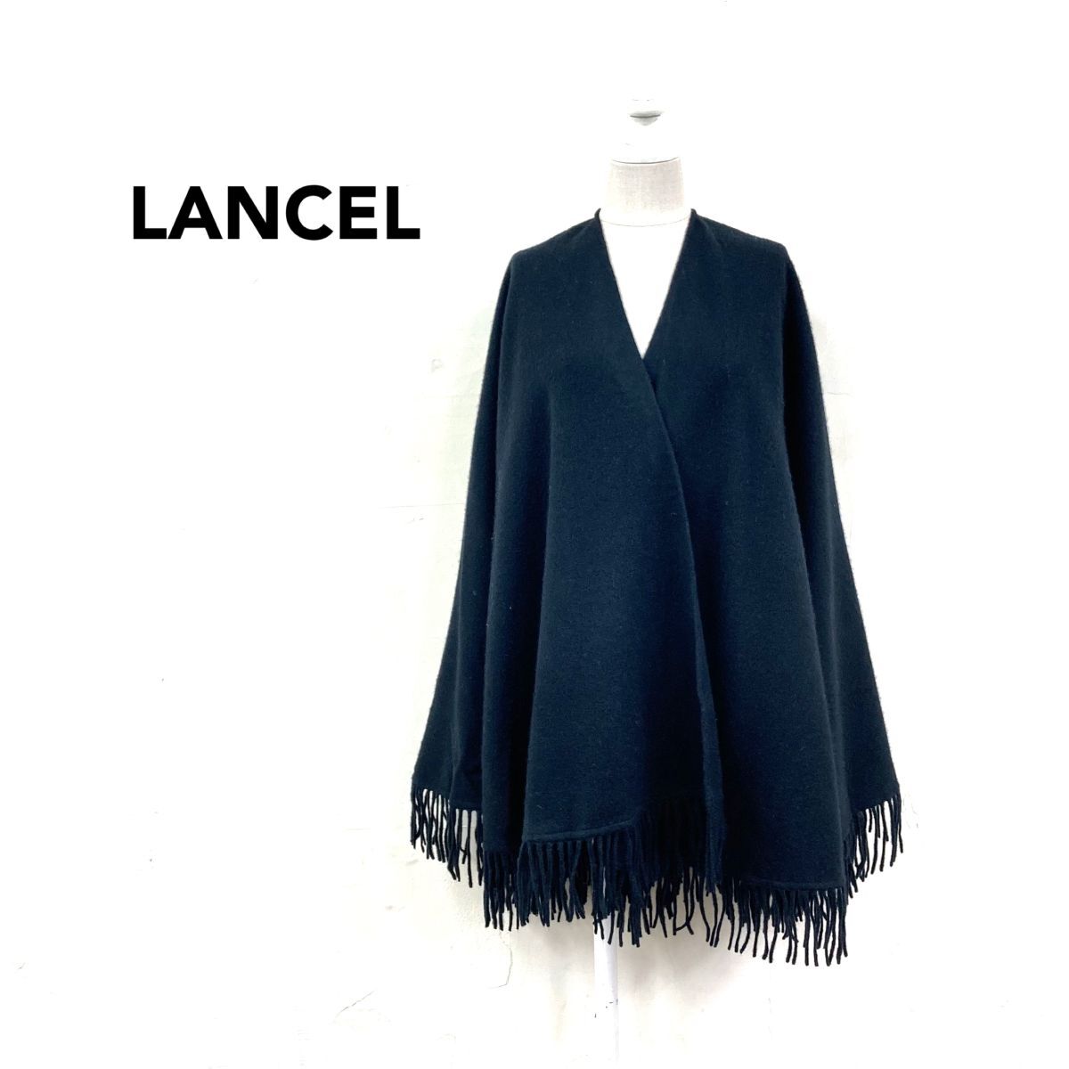 > 2O2550-Y◆LANCEL ランセル 無地フリンジショール ストール ウールタッチ レディース カジュアル 秋冬 おしゃれ 古着 ◆ブラック