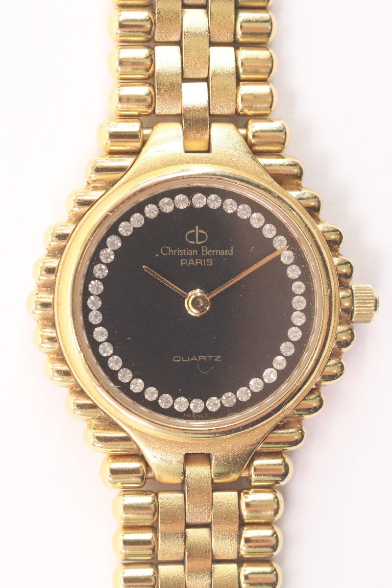 - Christian Bernard クリスチャンベルナール NS1310 18KGP 石付 クォーツ レディース 腕時計 黒文字盤 3578-HA