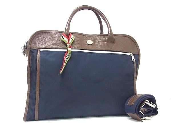 - 1円 ■美品■ Orobianco オロビアンコ ナイロン×レザー 2WAY ハンドバッグ ショルダーバッグ 斜め掛け ネイビー系×ブラウン系 BQ1941