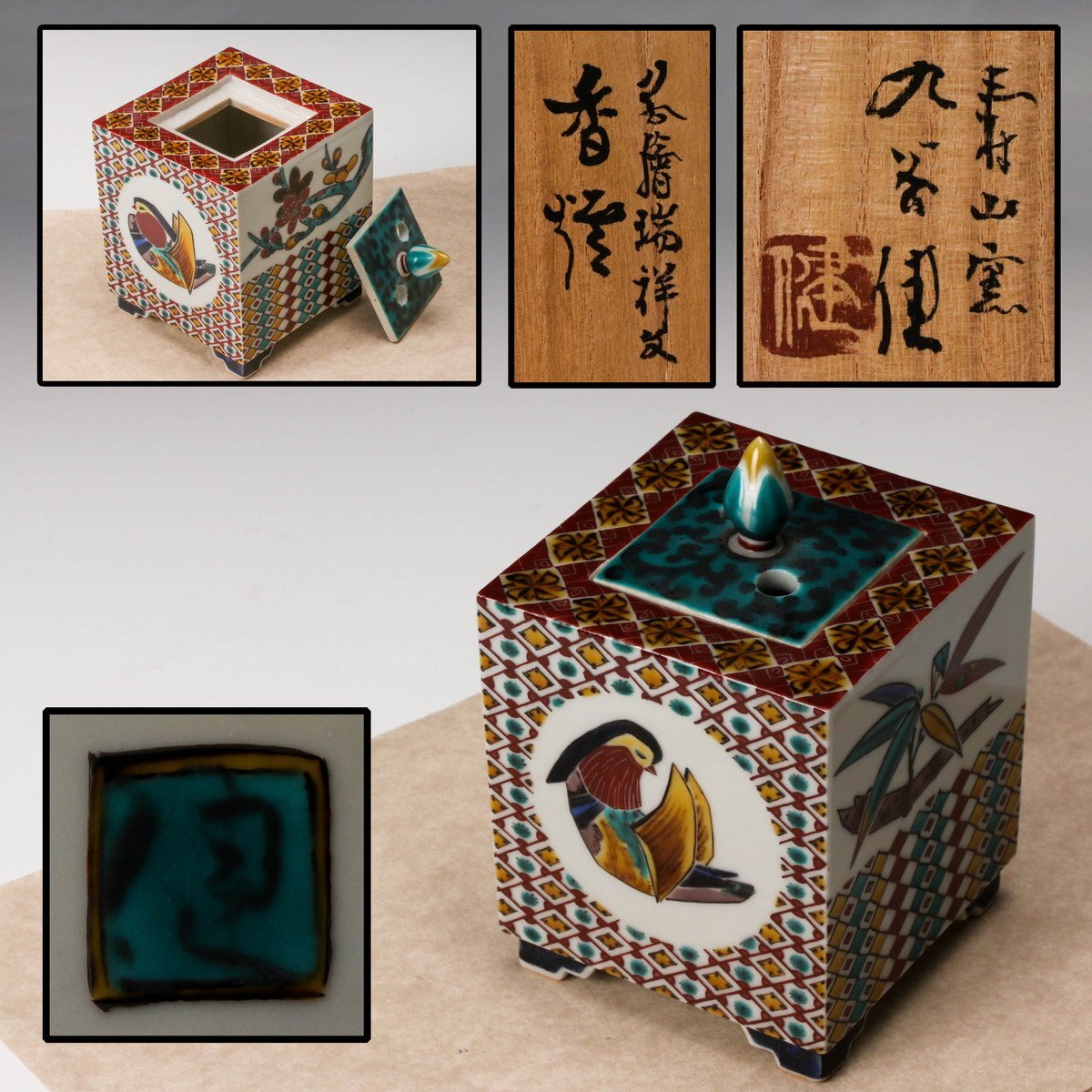【佳香】中嶋健一 寿山窯 九谷焼 色絵瑞祥文香炉 共箱 共布 栞 茶道具 本物保証