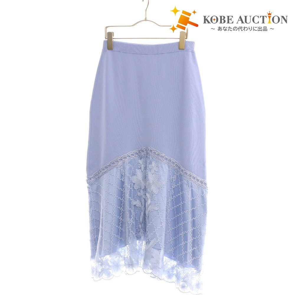- ■ グレースコンチネンタル ロングスカート 0123223059 レース フラワー ニット レディース 36(S相当) ライトブルー タグ付き 未使用