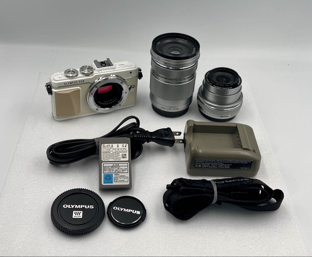 > 1円〜⑤【シャッター回数9200回】美品 OLYMPUS PEN Lite E-PL7 ED14-42mm 40-150mm ミラーレス ダブルズームキット 充電器 バッテリー付き