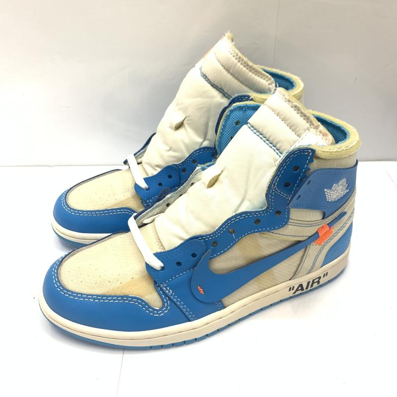> 【中古】NIKE×Off White AIR JORDAN 1 HIGH UNC White/Dark Powder Blue 26cm AQ0818-148 ナイキ オフホワイト[240092302910]