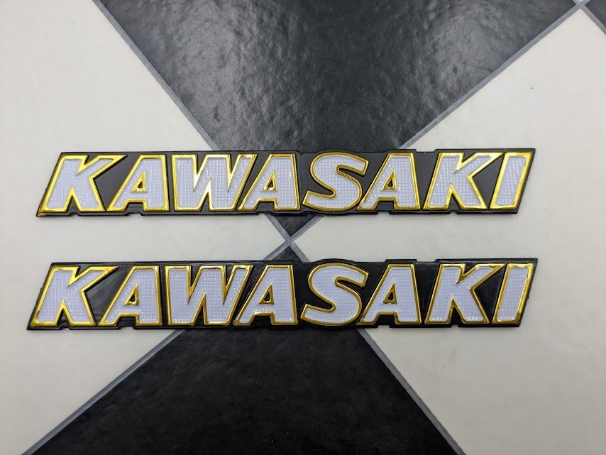 > カワサキ タンクエンブレム ゴールド縁取り 2枚set 検/ Z400FX Z900RS Z400J Z250FT KH Z1 Z2 Z1R MK2 ゼファー400 ZRX400 Z400GP CIBIE