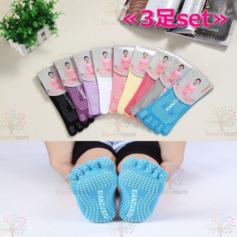 - 選べる3足 Aタイプ ノンスリップ ヨガソックス 五本指ソックス 靴下 ショート スポーツ 滑り止め付 K-308-a