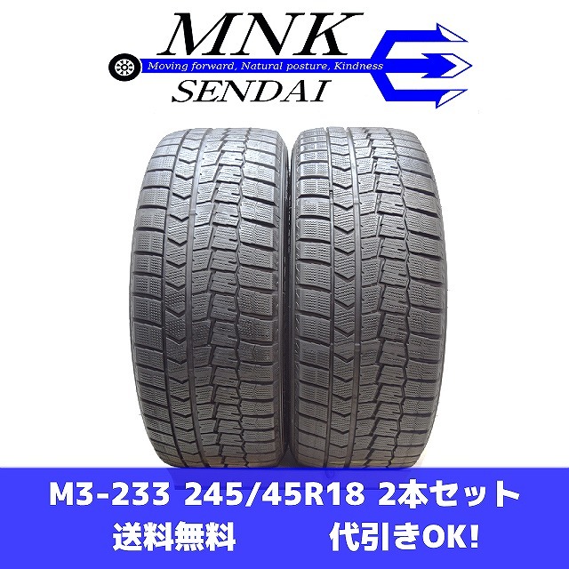 > M3-233(送料無料/代引きOK)ランク 中古 美品 バリ溝 245/45R18 DUNLOP WINTERMAXX WM02 2019年 8分山 スタッドレス 2本SET