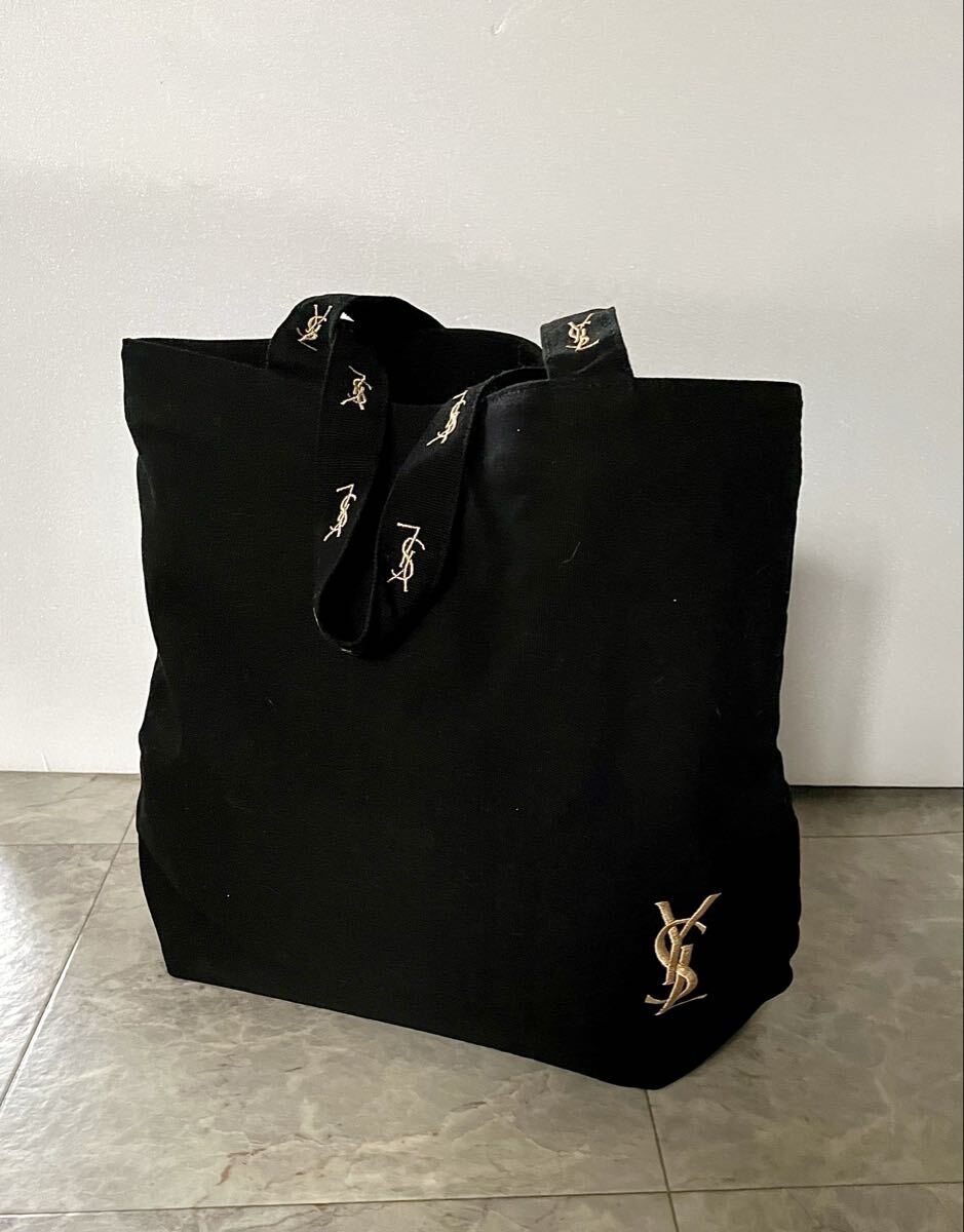 - 美品〈Yves Saint Laurent イブサンローラン〉トートバッグ 内ポケット付 金糸ロゴ刺繍入