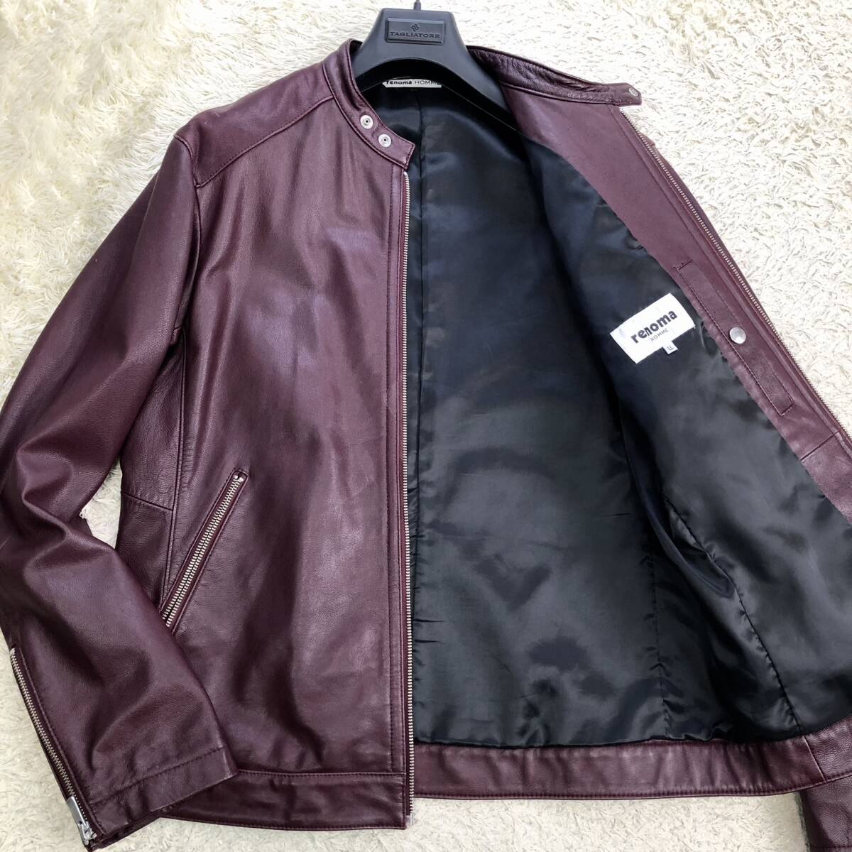 > XLサイズ/希少カラー●レノマオム renoma HOMME レザー ライダース ジャケット ボルドー 山羊 本革 シングル 秋冬◎ メンズ