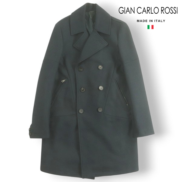 - 最高級!美品 GIAN CARLO ROSSI ジャンカルロロッシ 美シルエット カシミヤ混 メルトンウール ロング丈 Pコート 紺 48 参考価格¥110,000-
