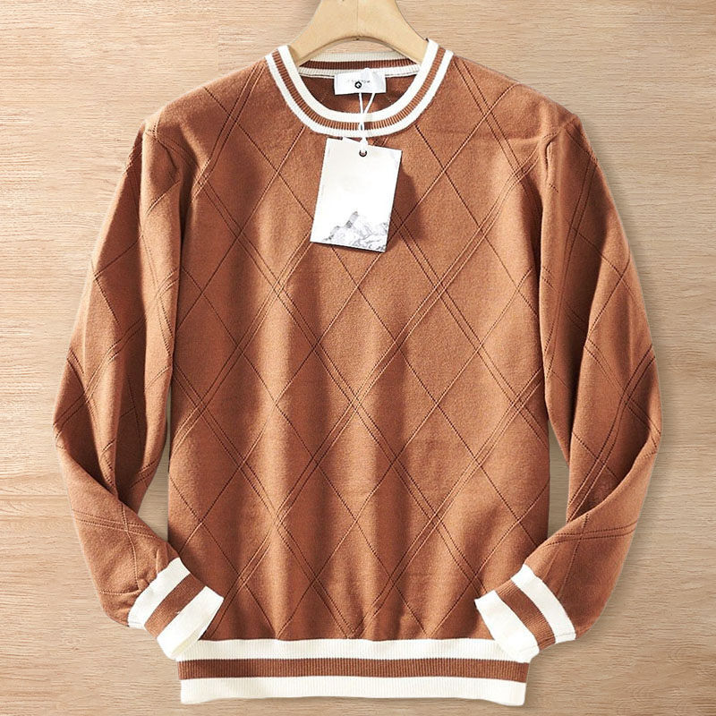 > Y6517-XL モカ 新品DCKMANY セーター ニット ジャカード ウール混 バイカラーデザイン ふんわり 暖かい 防寒 秋冬 通勤 メンズ トップス