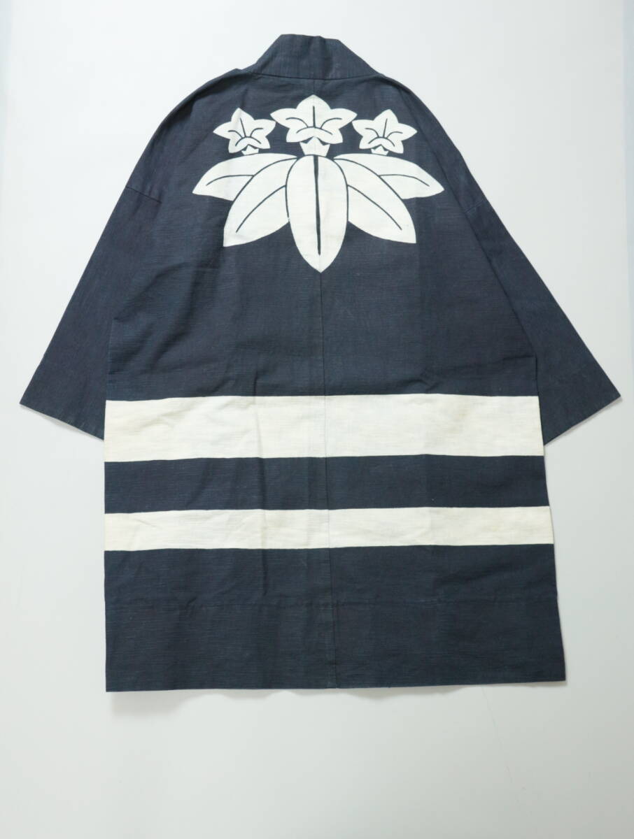 > C39/はっぴ/木綿生地/祭半纏/袢纏/法被/藍染/生地/リメイク/レトロ/昭和/和柄/和服/