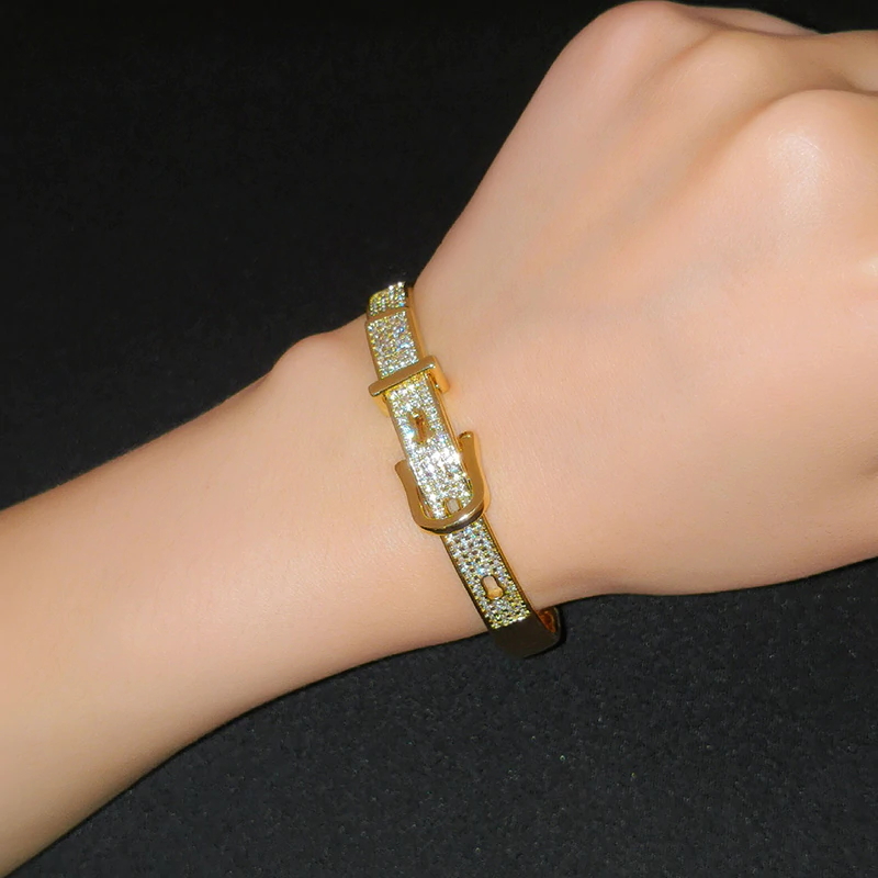 - 最高級・高級感抜群★czダイヤモンド ノット ブレスレット バングル ゴールド