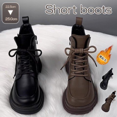 > レディース 靴 ミドルブーツ サイドファスナー ローヒール ショートブーツ 編み上げ 美脚 25.0cm(40) ブラウン(ノーマル)