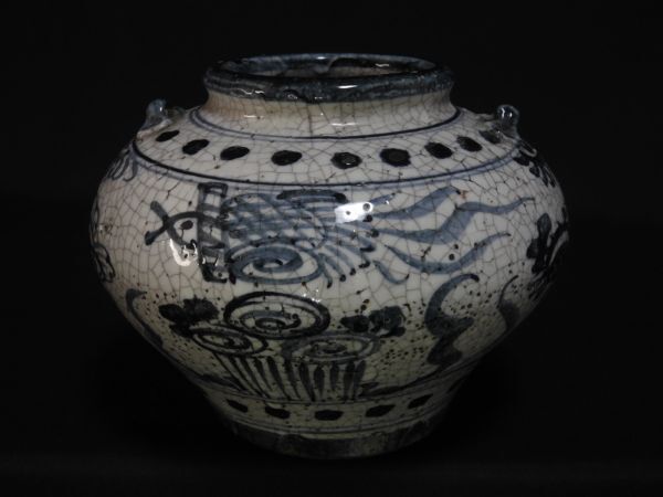 - 花器 花雲鳥図 耳付壺 壺 中国李朝韓国高麗 飾 置物 【送料無料】