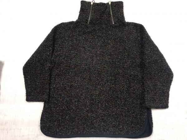 - Bashecinq-l ダブルジップ ギミック デザイン ハートジップトップ タートルネック ネップ ニット セーター トップス レディース LL 紺