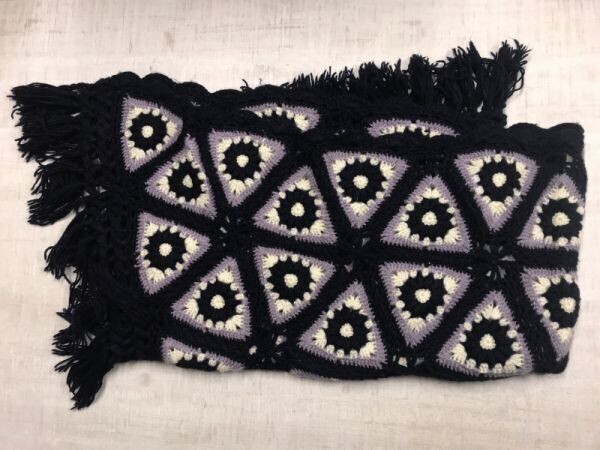- オールド レトロ カントリー モード クロシェ かぎ編み グラニー スクエア 大判 マルチカバー ラグ ブランケット 紺