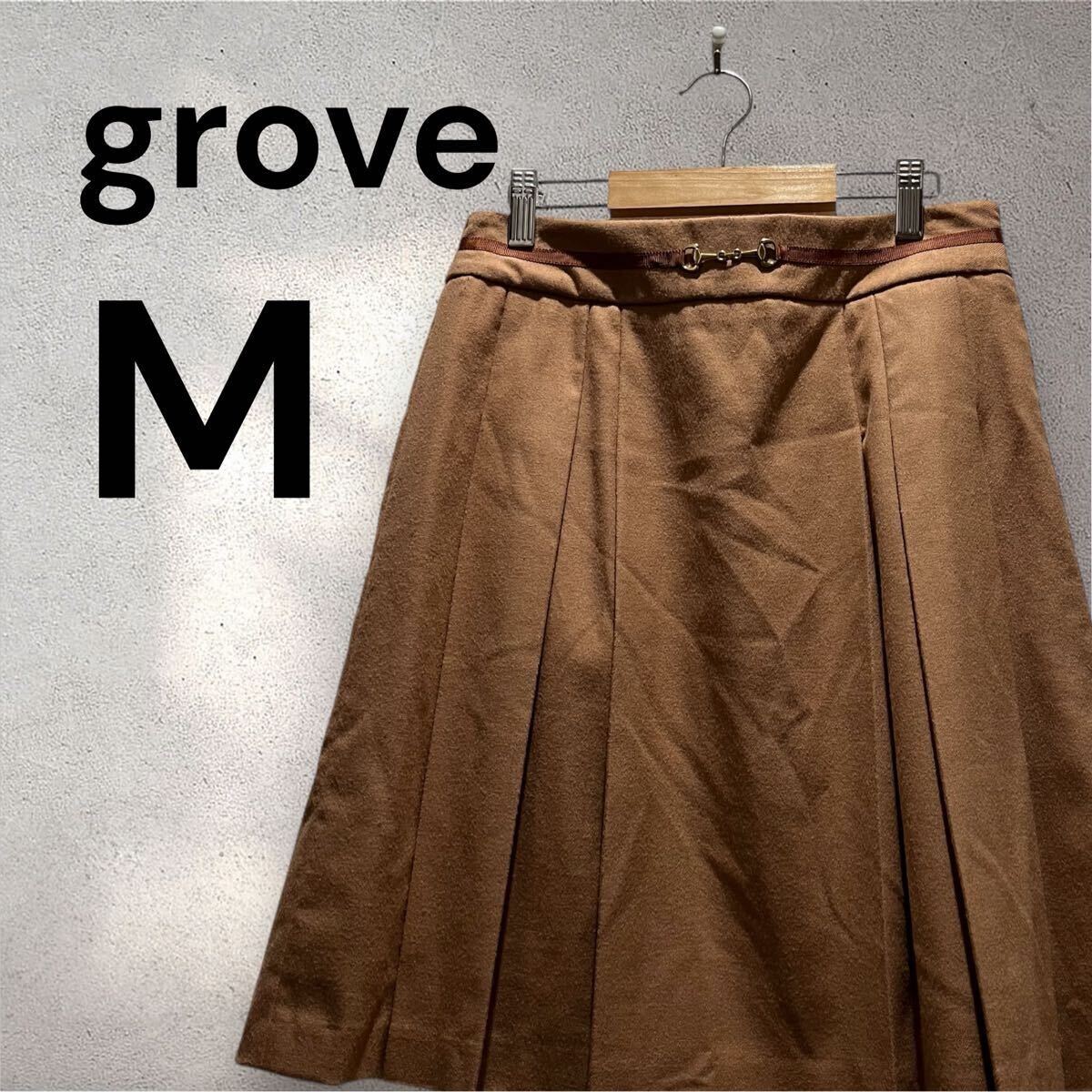 - グローブ プリーツスカート ベージュ ウエストバックル付き 膝丈 M grove スカート