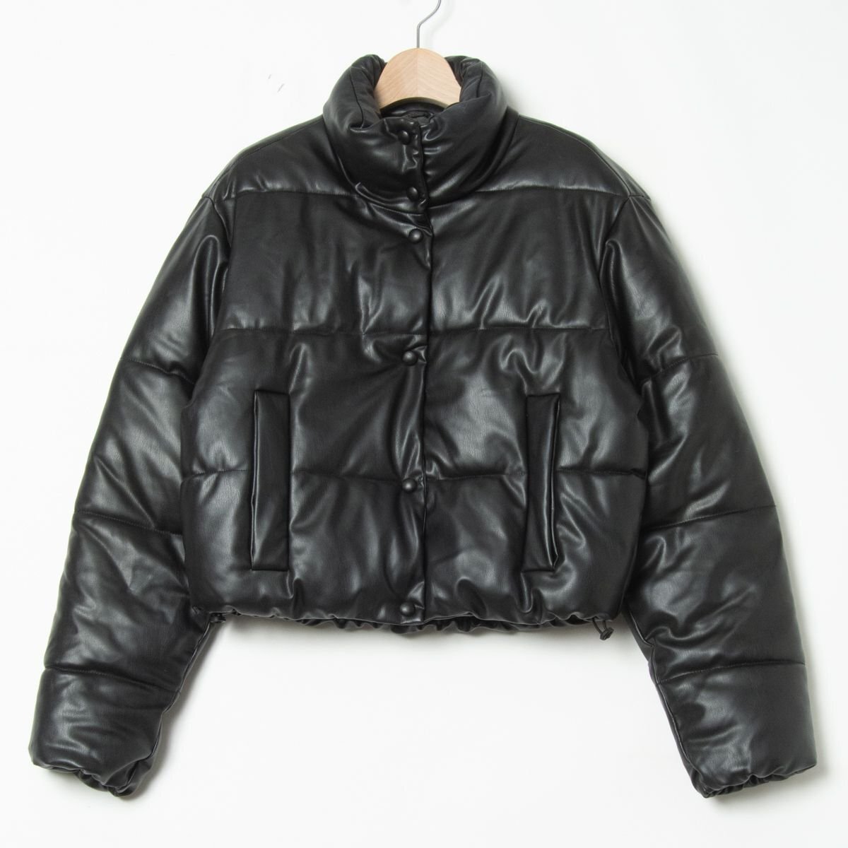 > ZARA ザラ ショート丈フェイクレザージャケット 中綿入り US XS ブラック ポリ100% ジップアップ スタンドカラー レディース 秋冬