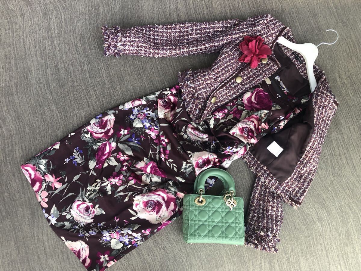 - MOGA ★最高級WD サイドギャザー&ローズプリンが美しいセレブ感溢れますワンピース&BJ上級ツイードジャケット★素敵2ピース5万超える