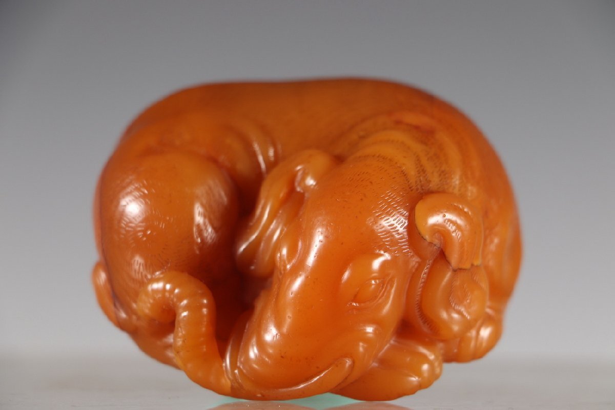 > 【清】某有名オークション購入 清時代 寿山田黄石 太平有象紋根付 材質保証 古置物 古擺件 古美術 時代コレクション7L10-BD8