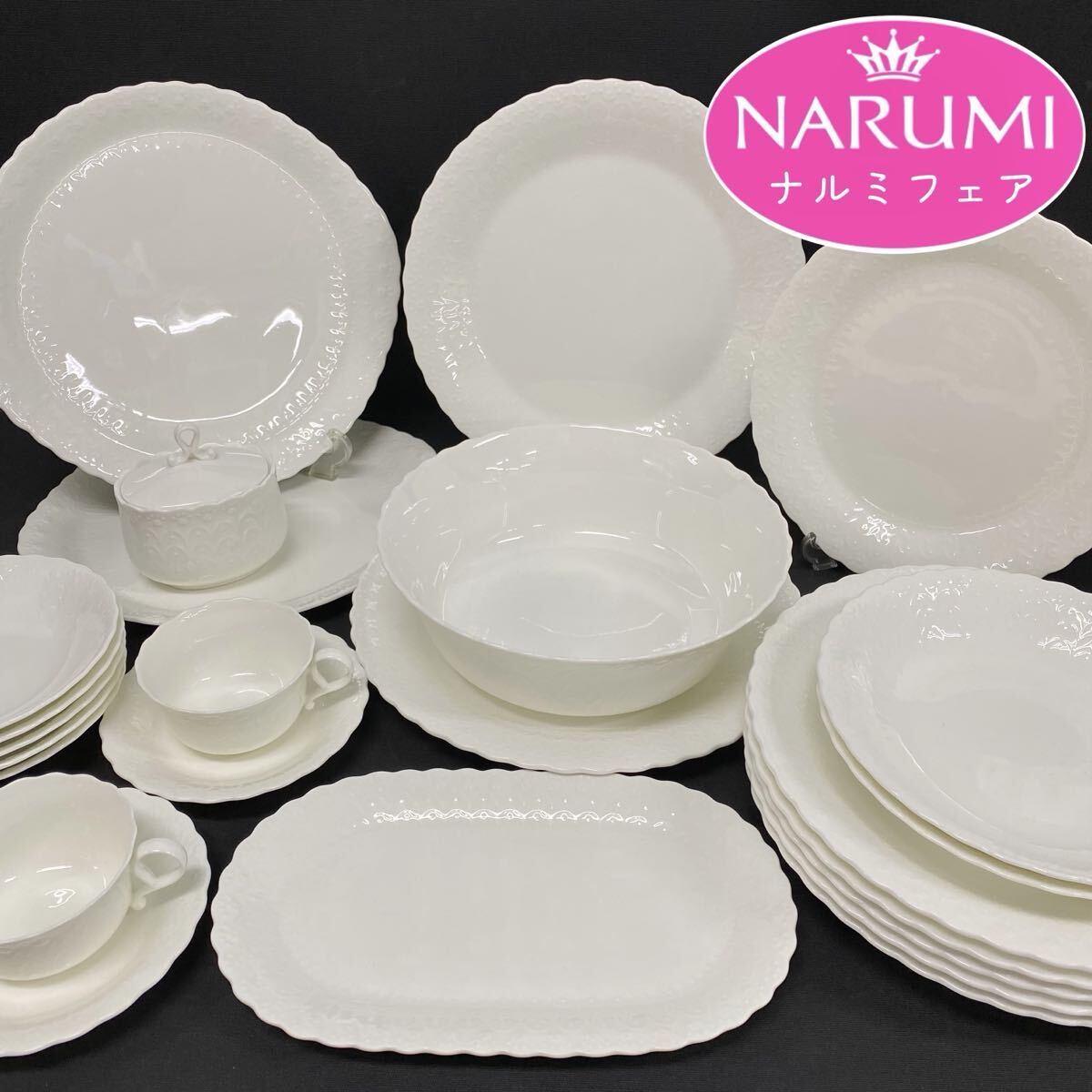 > SU■⑤ NARUMI ナルミ 食器 まとめ売り Silky White シルキーホワイト 大皿 ボウル カップ&ソーサー シュガーポット 白 陶器製 洋食器