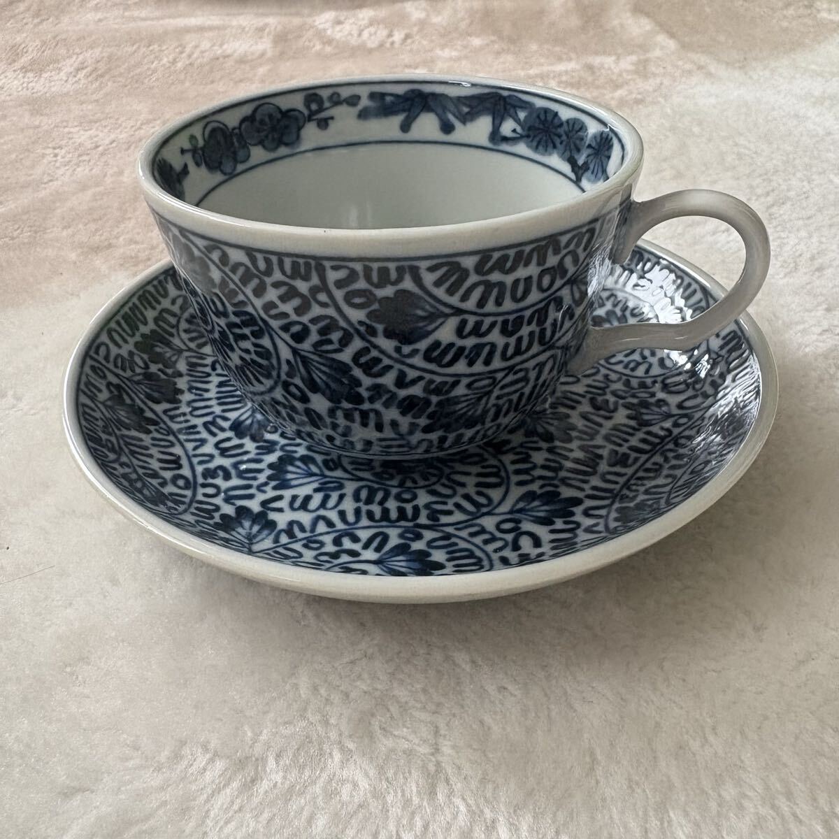 - 【大島染付】 カップ&ソーサー コーヒーカップ 珈琲碗 ティー 蛸唐草 梅 b