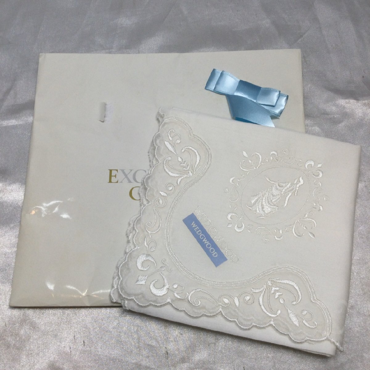> 【未使用/保管品/TO】WEDG WOOD ウェッジウッド ハンカチ 綿100% ホワイト 刺繍 レース ハンカチーフ MZ1028
