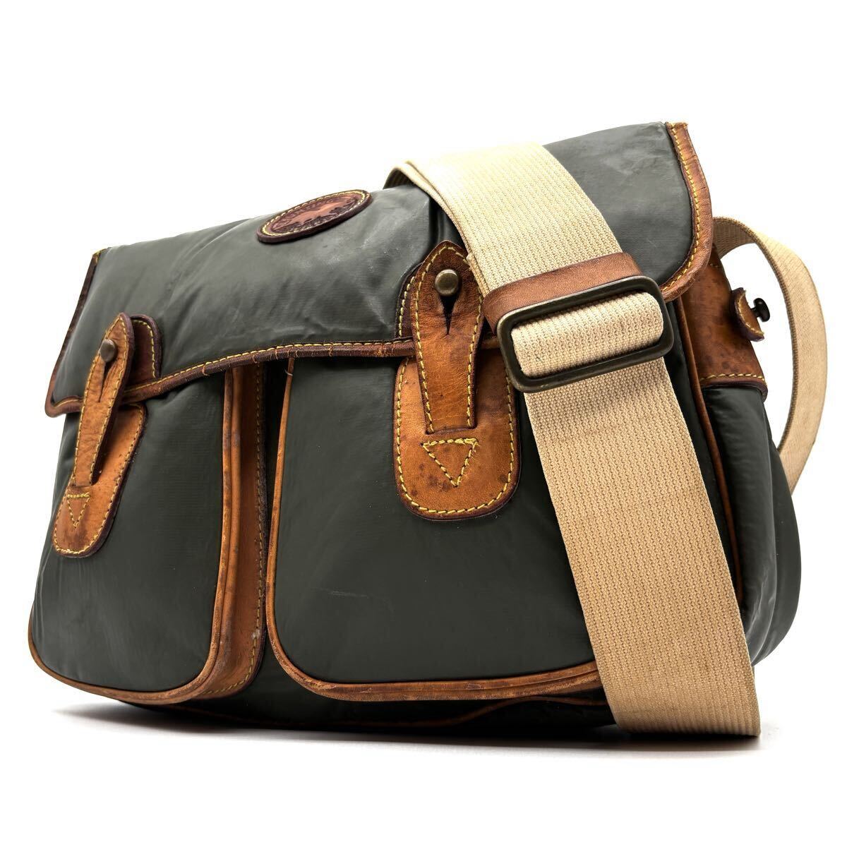 > 1円 正規品 HUNTING WORLD ハンティングワールド ショルダーバッグ メッセンジャーバッグ バチュークロス フラップ カーキ
