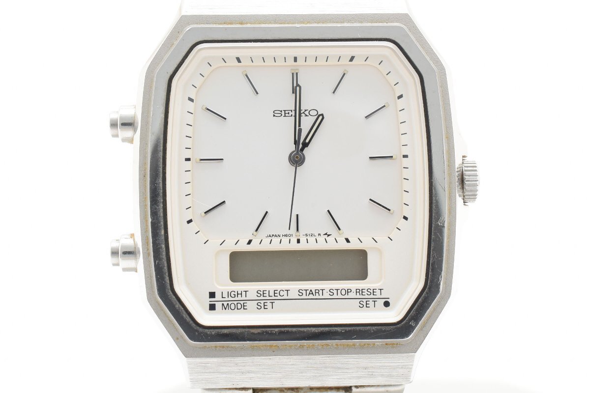 > SEIKO QUARTZ セイコー クォーツ スクエア レクタングル 腕時計 メンズ レディース 3針 アナログ デジタル ホワイト シルバー H601-5070