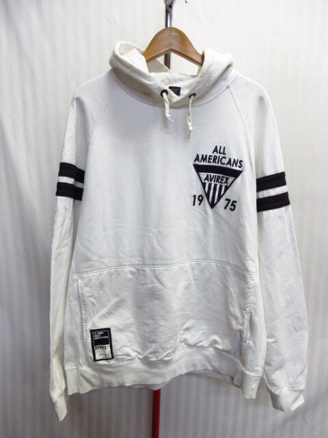 - AVIREX アヴィレックス ロゴ刺繍パーカー メンズXL LL 白 スウェットパーカー フーディー フライトジャケット フードジャージトップ10231