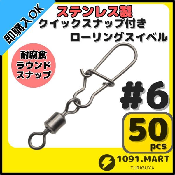 - 【送料無料】ステンレス製 クイックスナップ付き ローリングスイベル #6 (26㎜ 20㎏) 50個セット スナップ サルカン 様々な釣りに!