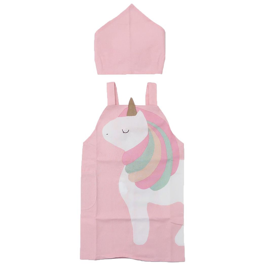 - エプロンセット キッズエプロン&三角巾 M ハローユニコーン ピンク フレンズヒル