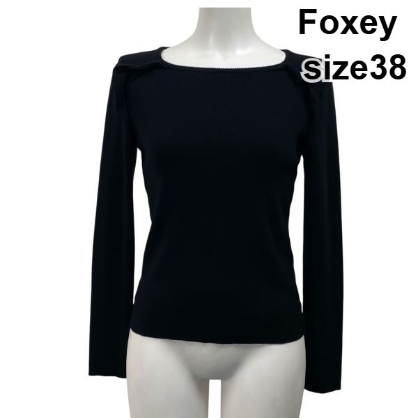 - フォクシー Foxey ニット 長袖 ラウンドネック カットソー 黒 毛 38 M 9号 レディース S5V639