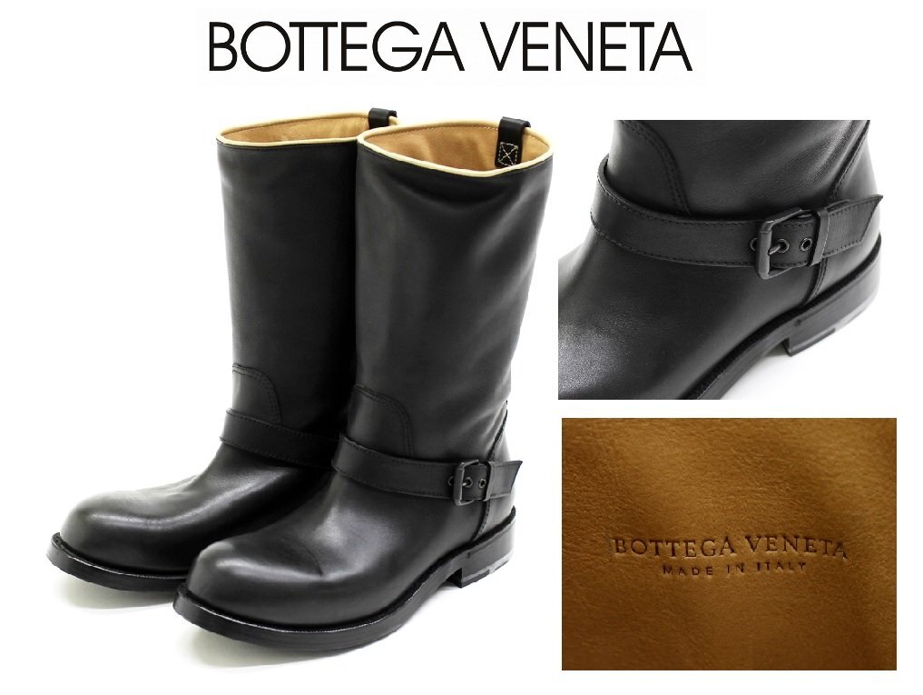 > 38万新品◆43=28cm◆ボッテガヴェネタ バックルベルト付きレザーエンジニアブーツ 黒 1円