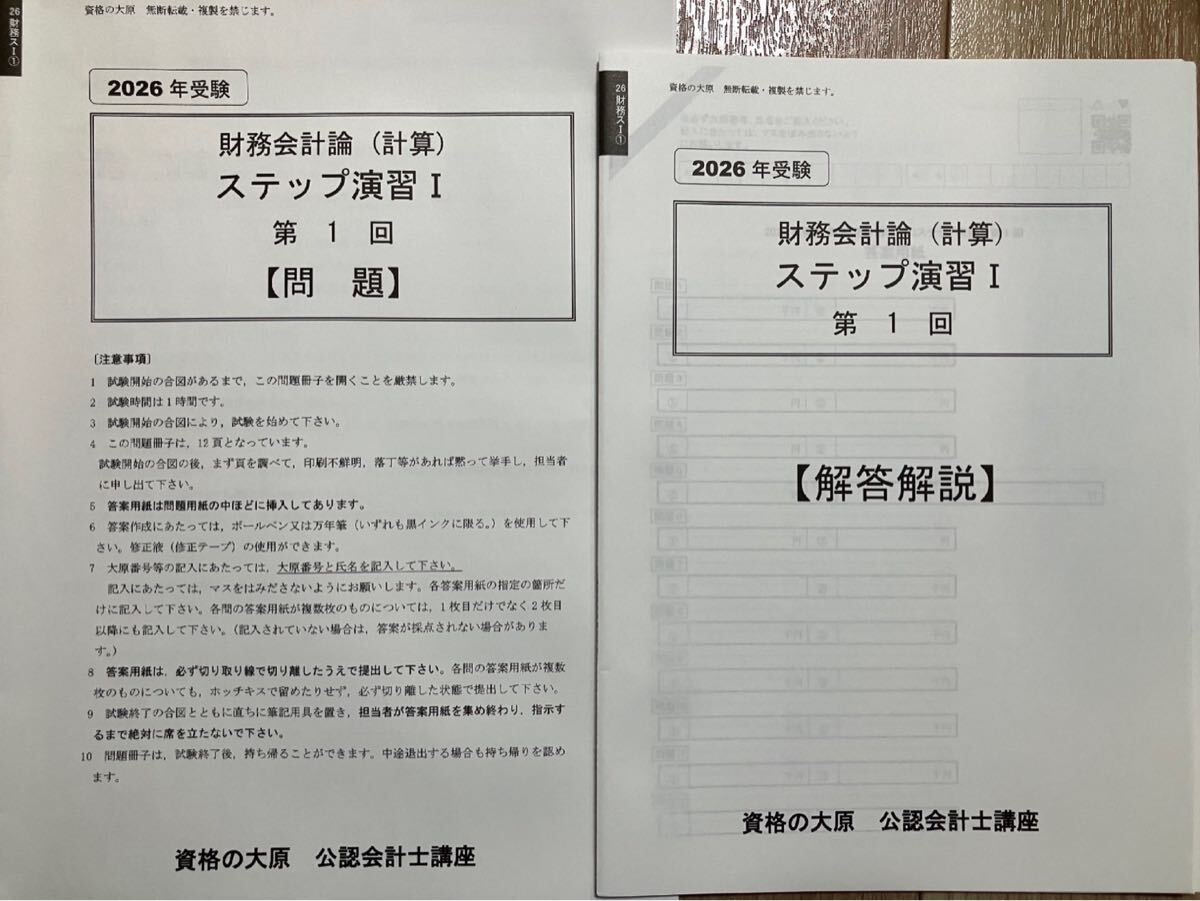 - 2026年★公認会計士★大原★財務会計論ステップ答練1★全16回