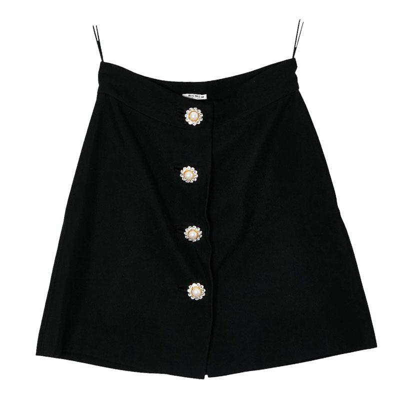 > ミュウミュウ 台形スカート サイズ38 ブラック レーヨン ビジュー レディース MIUMIU 【中古】