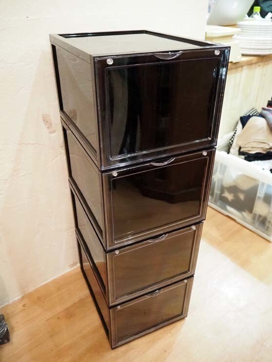 > ◆4個セット シューズボックス スニーカーボックス スタッキング 収納 コレクション 整理 箱 ブラック◆