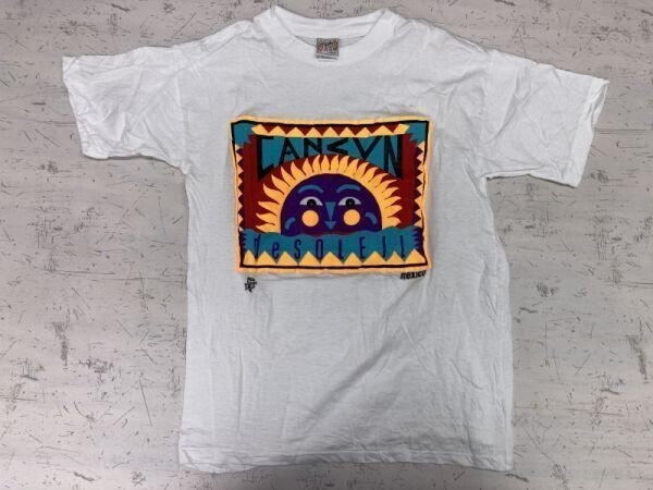 > CANCUN カンクン Mexico メキシコ スーベニア サイケデリック エスニック サーフ 南米 古着 半袖Tシャツ カットソー メンズ 40 白