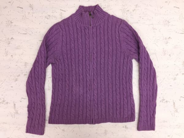 - エルエルビーン L.L.Bean アメカジ アウトドア ナチュラル ケーブル編み コットンニット ジャケット セーター レディース 綿100% S 紫