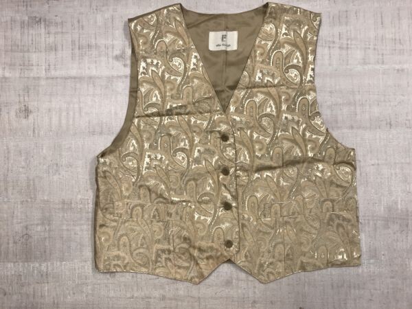 - elle lounge レトロ モード トラッド クラシック 古着 光沢 ペイズリー柄ジャガード ベスト ジレ レディース 日本製 15BR ベージュ