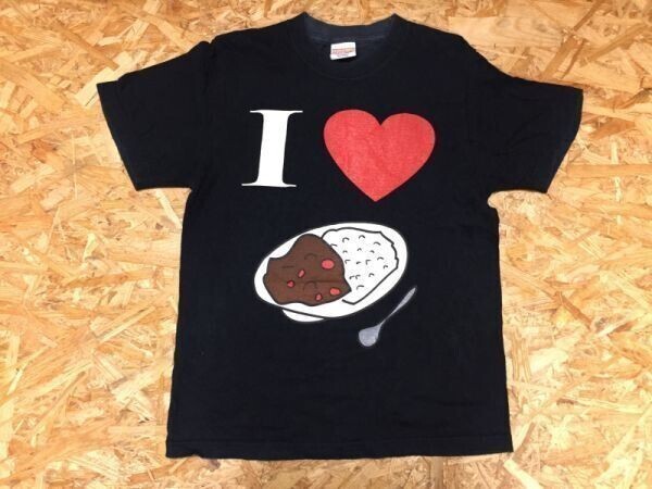 - I LOVE カレーライス 自己PR #カレー好きな人と繋がりたい ユーモア おもしろ系 半袖Tシャツ メンズ コットン100% S 黒