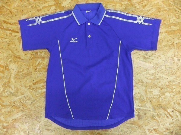 - MIZUNO ミズノ メンズ ポリエステル100% スポーツ ストレッチ素材 ライン入 ロゴプリント 専国文愛 半袖ポロシャツ S 青