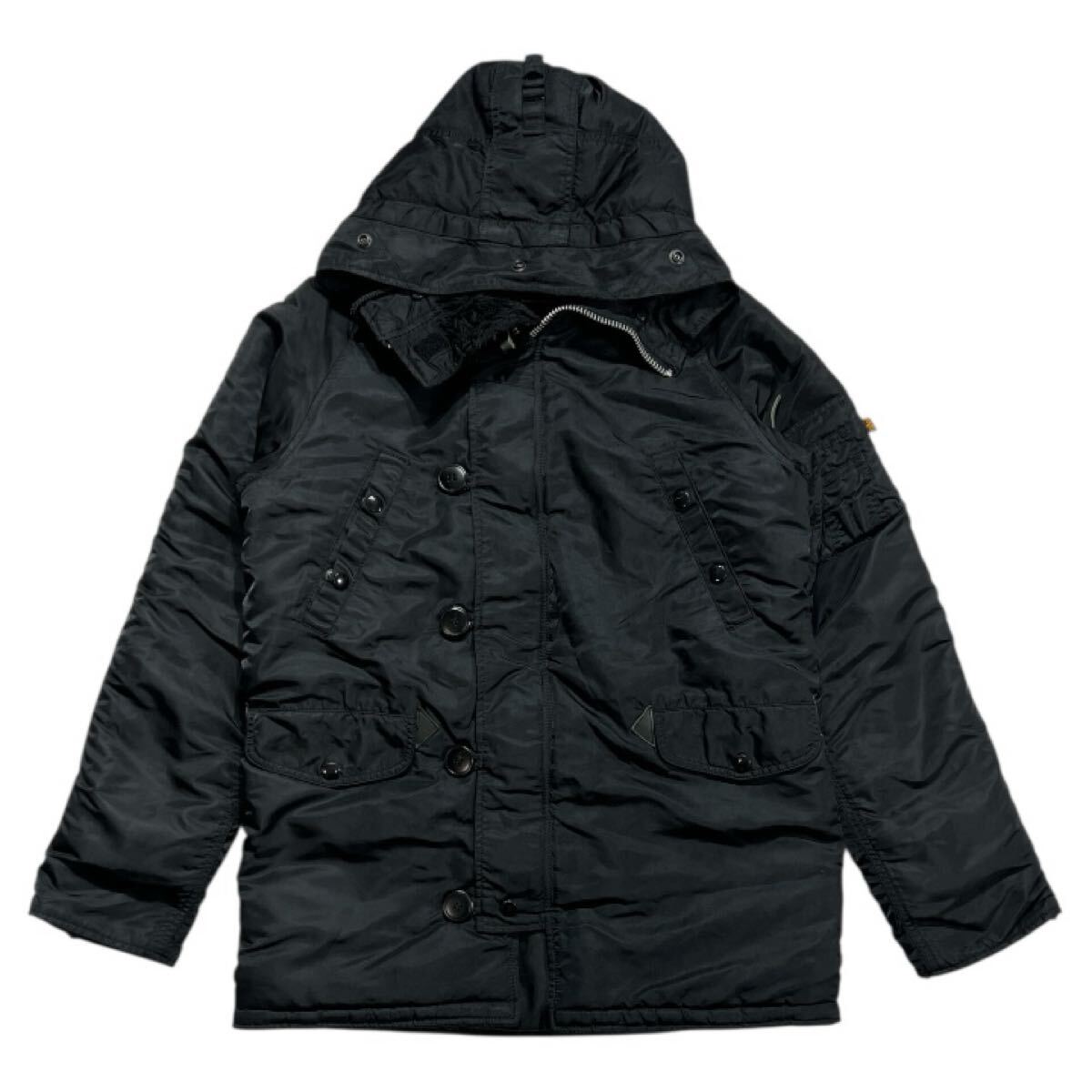 - ■ ALPHA INDUSTRIES アルファ ■ ロゴ タブ 中綿入 N-3B N3B ミリタリー フライト ジャケット ブラック M