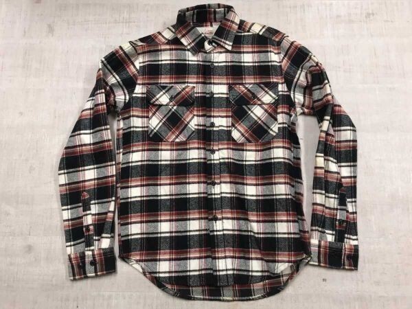 > Roushatte ルーシャット ワークウェア アメカジ 猫目ボタン 両胸ポケット 長袖 ネルチェック シャツ メンズ 綿100% S 黒 赤