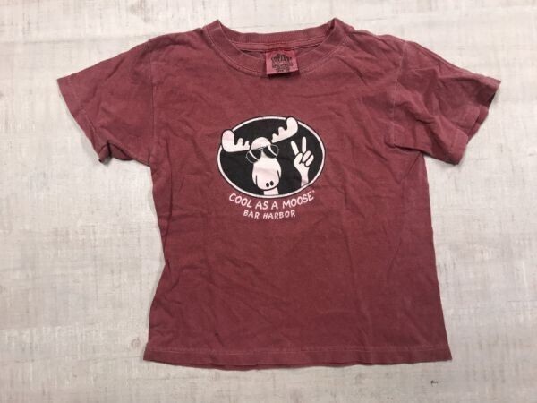 - COMFORT COLORS カナダ スーベニア COOL AS A MOOSE 後染め オーバーダイ BAR HARBOR トナカイ 半袖Tシャツ カットソー XSサイズ 赤系