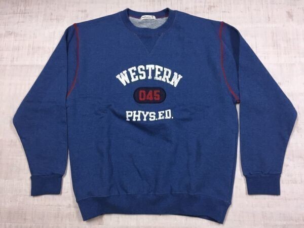 > 名前のない本 韓国製 90s 国産レトロ オールド アメカジ 古着 Vガゼット カレッジ スウェット トレーナー メンズ 大きいサイズ LL 青