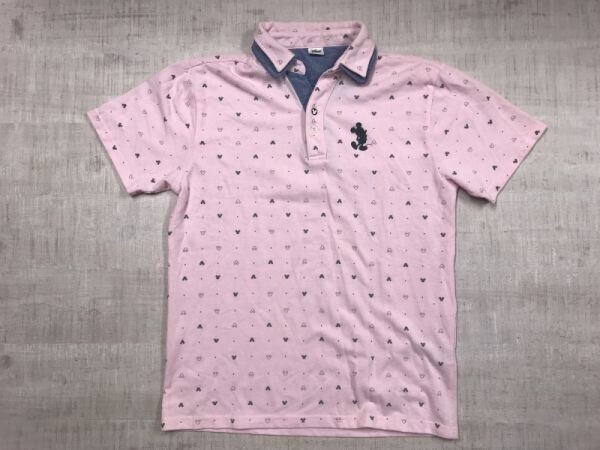 - ディズニー Disney アメトラ スポーツ ミッキーマウス モノグラム 鹿の子 半袖 開襟 ポロシャツ メンズ コットン混 L ピンク